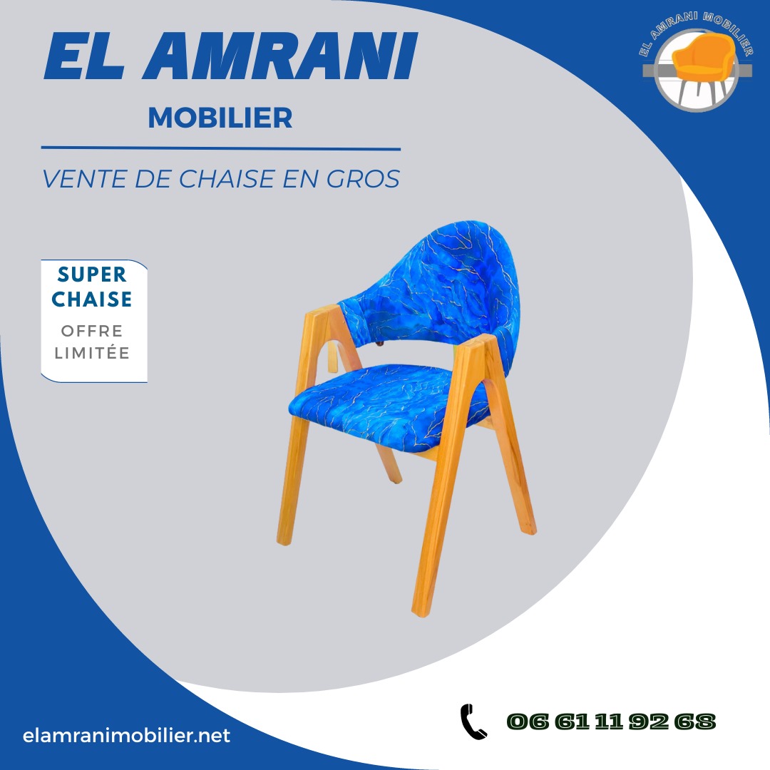 Chez El Amrani Mobilier, nous savons que chaque détail compte. C’est pourquoi notre équipe dédiée est là pour vous conseiller à chaque étape, de la sélection des modèles à la personnalisation des finitions. Offrez à vos clients une expérience exceptionnelle grâce à nos chaises en gros.